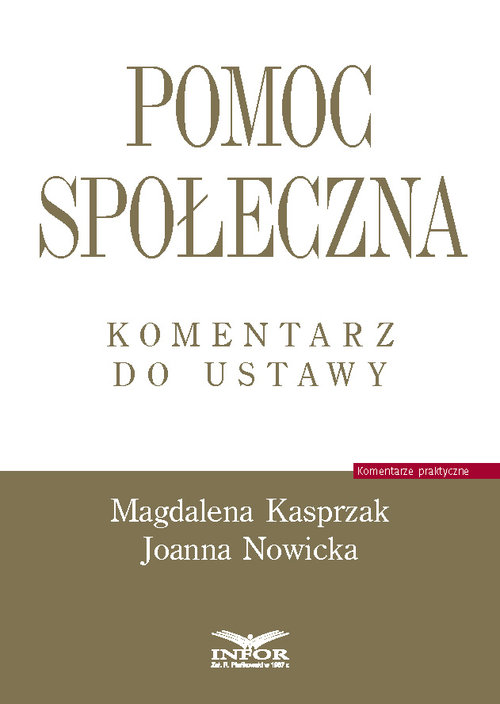 Publikacja jest kompleksową i praktyczną analizą przepisów zarówno samej ustawy o pomocy społecznej, jak i innych aktów bezpośrednio związanych z funkcjonowaniem systemu pomocy społecznej. Wskazuje, w jaki sposób należy interpretować obowiązujące przepisy oraz w jakim zakresie można je stosować. Uwzględnia zmiany, które weszły w życie 1 stycznia 2020 r. Komentarz do ustawy o pomocy społecznej zawiera liczne odniesienia do przepisów innych ustaw oraz aktów wykonawczych, które również zostały w nim omówione. Autorki przytaczają także aktualne orzecznictwo, wskazujące obowiązujące linie orzecznicze w sprawach spornych lub budzących istotne wątpliwości interpretacyjne. Całość stanowi praktyczny przewodnik po systemie pomocy społecznej, omawiający m.in.: ? zasady pomocy społecznej, ? podział zadań pomocy społecznej między administrację publiczną – zadania administracji rządowej oraz zadania własne gminy i powiatu, ? instytucje pomocy społecznej, ? formy i tryb udzielanej pomocy, w tym kryteria przyznawania świadczeń. Publikacja z pewnością ułatwi lepsze i szybsze zrozumienie przepisów ustawy o pomocy społecznej oraz innych aktów prawnych. Przede wszystkim jednak usprawni stosowanie tych przepisów oraz rozwiązywanie kwestii spornych. Z tego względu opracowanie to polecamy szczególnie: ? osobom zajmującym się zawodowo pomocą społeczną, ? pracownikom socjalnym, ? pracownikom administracji publicznej i jednostek organizacyjnych pomocy społecznej, ? prawnikom specjalizującym się w zagadnieniach systemu pomocy społecznej.