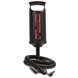 Podwójna objętość Podwójne działanie Pompuje powietrze zarówno przy ruchu tłoka w górę jak i w dół Wąż z czterema różnymi końcówkami Wytrzymały, lekki korpus