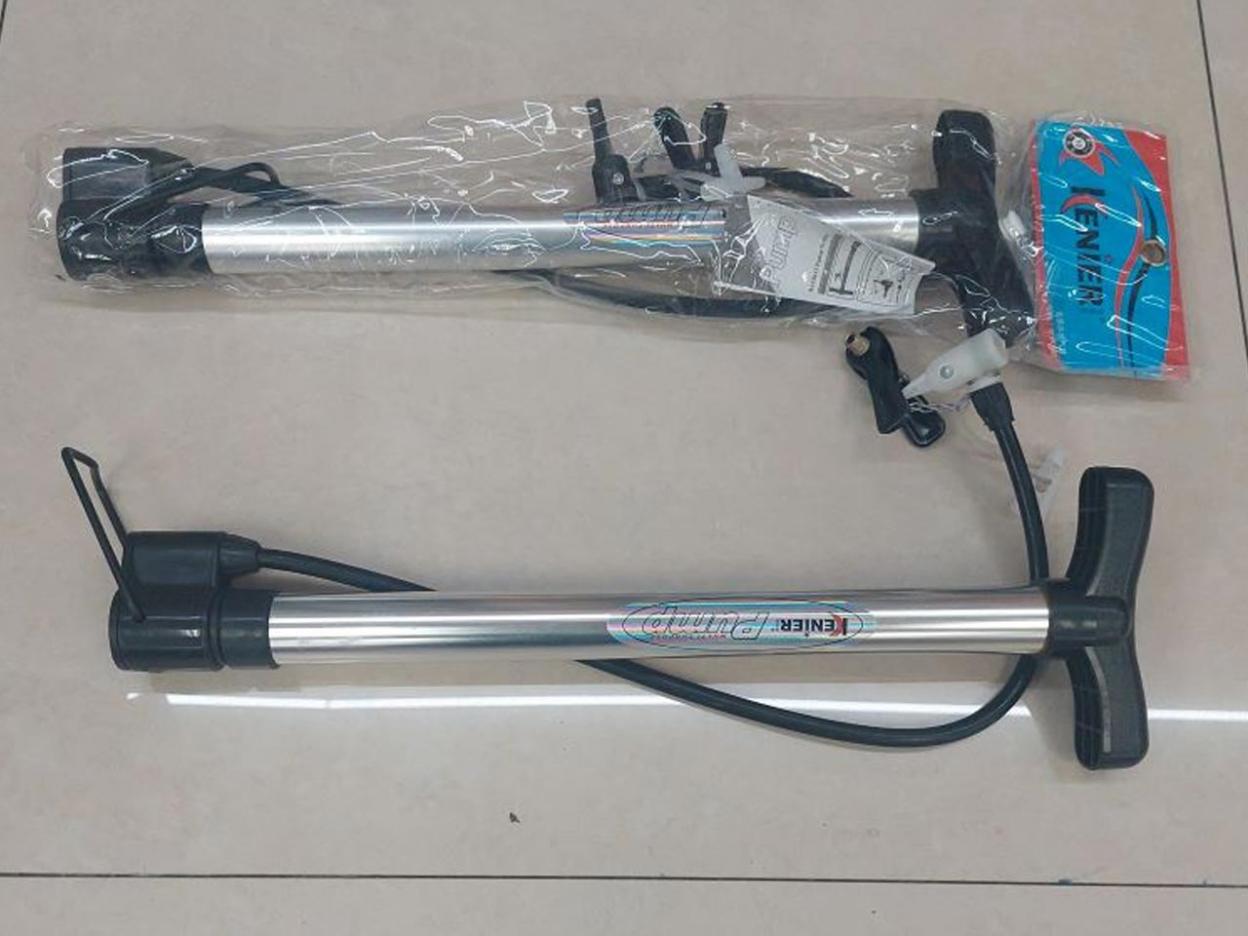 Ręczna pompka Kenier to niezawodne akcesorium do szybkiego pompowania opon rowerowych, piłek czy dmuchanych zabawek. Wykonana z wytrzymałego aluminium, wyposażona w uniwersalną końcówkę oraz stabilną podpórkę. Idealna zarówno do użytku domowego, jak i na wyjazdy. Cechy produktu: Materiał: aluminium + tworzywo sztuczne; Uniwersalna końcówka do różnych typów zaworów; Podpórka ułatwiająca pompowanie; Poręczna i lekka konstrukcja. Wymiary: Długość całkowita: ok. 33 cm; Średnica cylindra: ok. 3,5 cm; Szerokość rączki: ok. 13 cm.