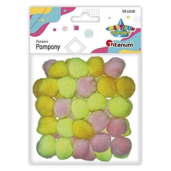 Pompony akrylowe 20 mm mix kolorów: kanarkowy, żółty, różowy, 48 sztuk