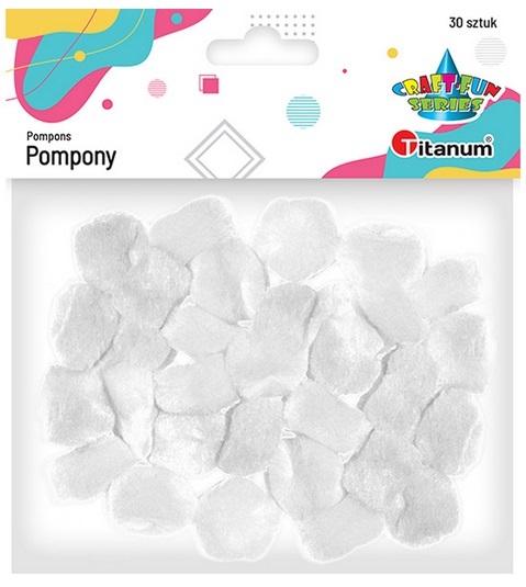 Pompony akrylowe. Kolor biały. Średnica: 25 mm. 30 szt. w opakowaniu.
