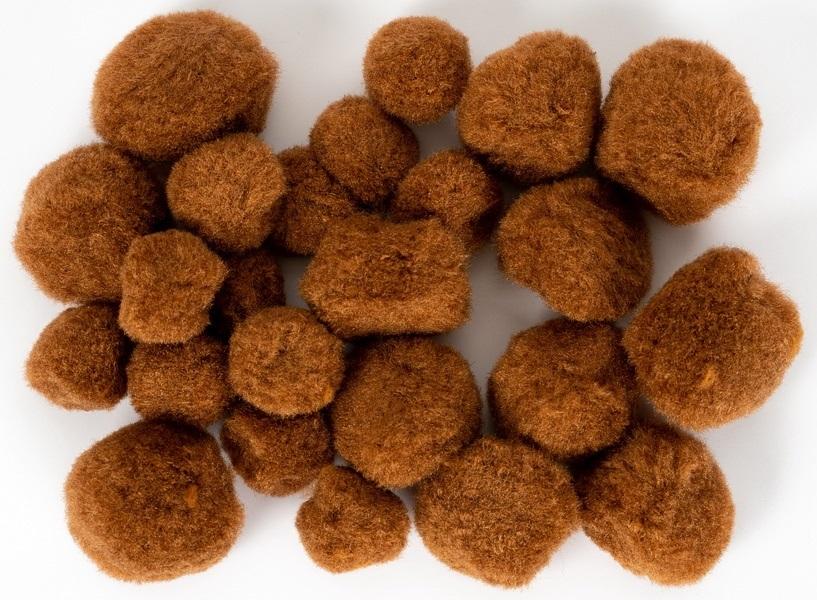 Opakowanie Pompony akrylowe brązowe MIX rozmiarów