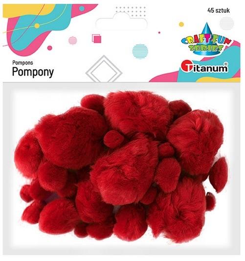 Czerwone pompony akrylowe w różnych rozmiarach. 45 szt. w opakowaniu.