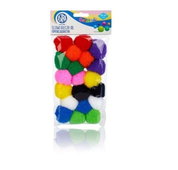 Opakowanie Pompony dekoracyjne 40mm tęczowe kuleczki XXL 20 sztuk