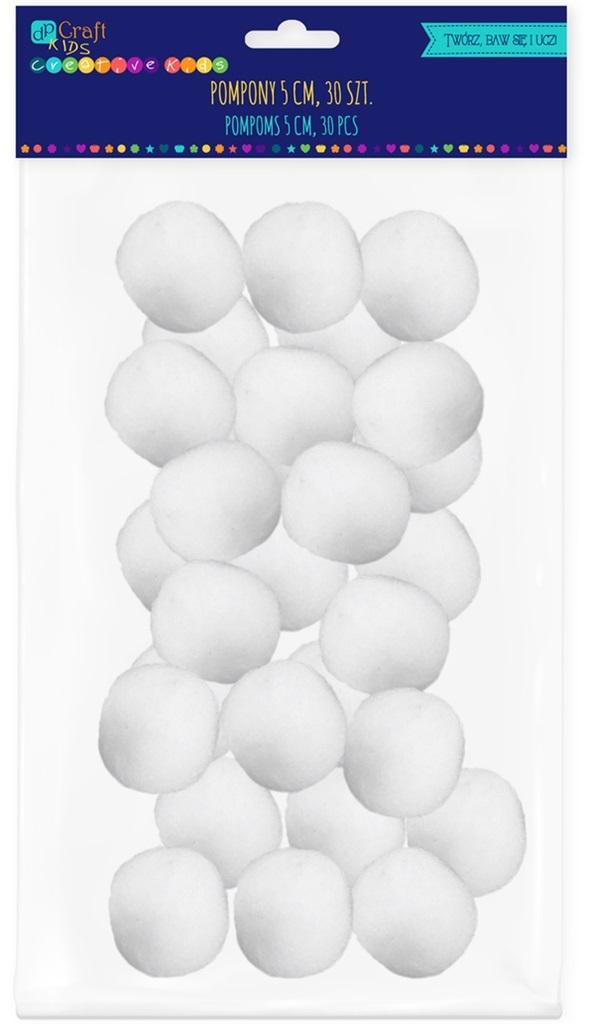 Opakowanie Pompony poliestrowe białe 5cm 30szt
