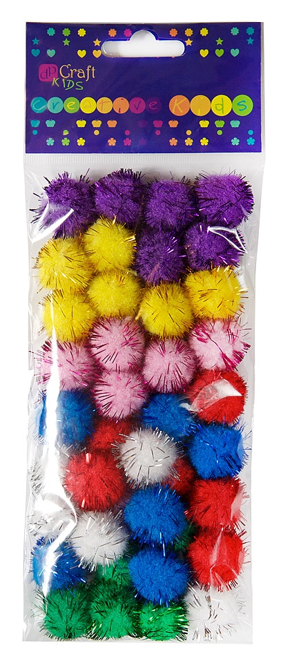 Wysokiej jakości puszyste, miękkie kuleczki. Doskonale nadają się do do wszelkiego rodzaju dziecięcej aktywności twórczej - tworzenia postaci, zwierząt, stworków i wielu innych. Można je nawlekać na sznurki, druciki kreatywne lub przyklejać do prac plastycznych i pudełek. Sprawdzają się również w projektach kreatywnych, takich jak kartki okolicznościowe, albumy, opakowania prezentów i elementy wystroju wnętrz. Ilość w opakowaniu: 40 szt. Rozmiar: 2 cm