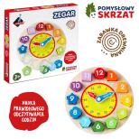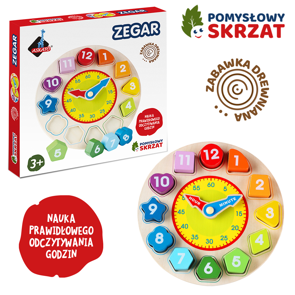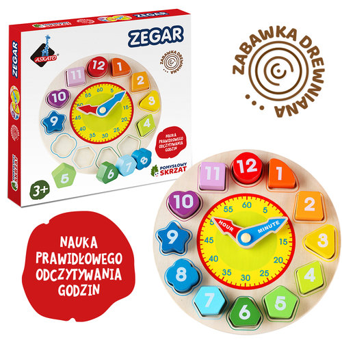 Drewniany zegar z ruchomymi wskazówkami to idealna zabawka dydaktyczna dla dzieci, aby poprzez zabawę uczyły się prawidłowego odczytywania godzin, minut oraz zarządzania czasem. Ten barwny zegar do nauki oferuje masę dodatkowych rzeczy do odkrycia. Zabawka ma wyciągane elementy, w kształcie różnych figur, które maluch może odpowiednio dopasować na miejsca oraz cyferki na drewnianych klockach. Nauka posługiwania się zegarem została ułatwiona przez zastawanie rozbudowanej tarczy zegarowej umożliwiającej liczenie minut. Zegar o średnicy 21.5 cm Dla dzieci powyżej 3 lat wymiary opakowania: 27 x 3 x 28 cm