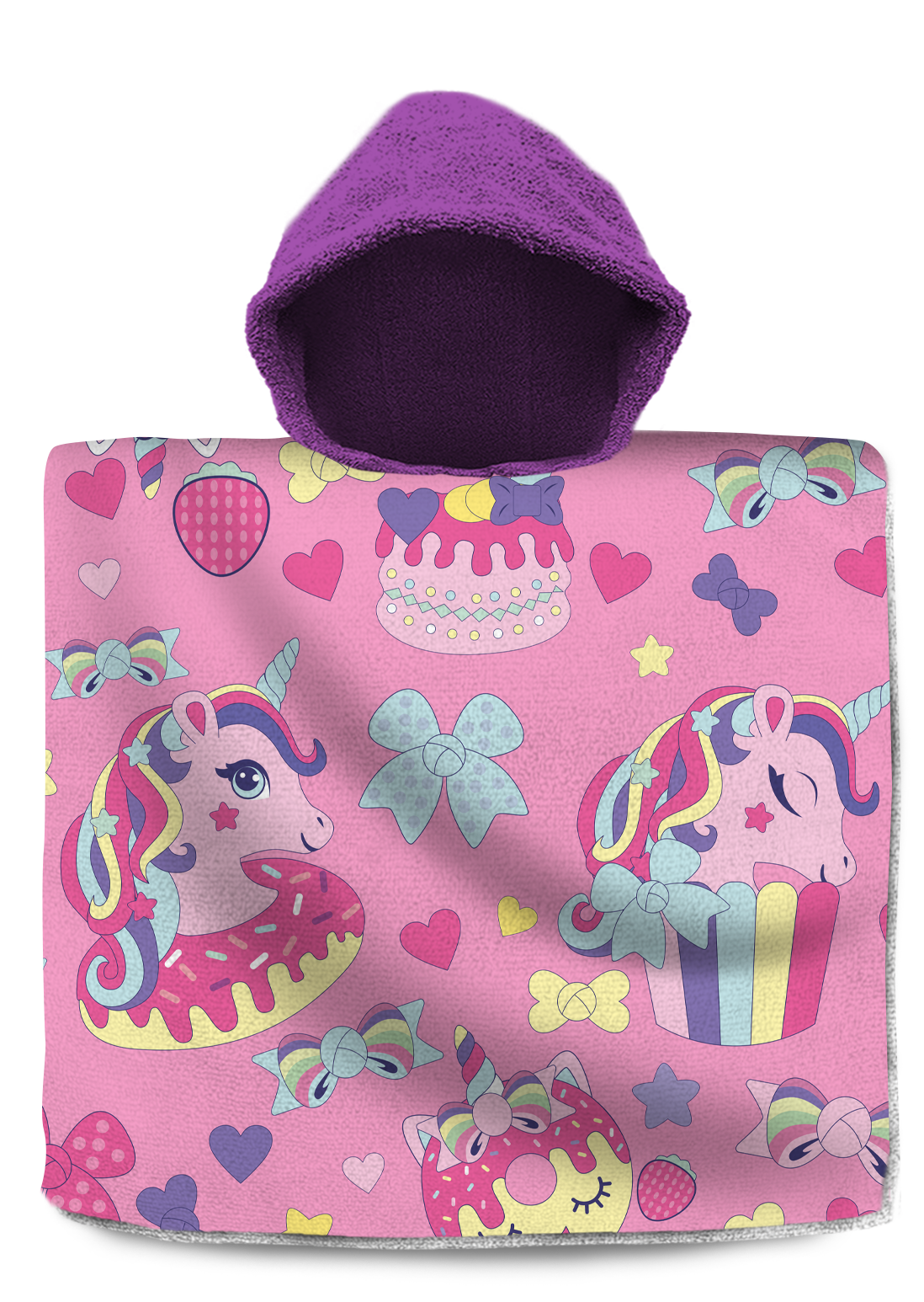 Poncho kąpielowe z motywem Cupcake zawsze potrzebne w domu, na basenie czy na plaży. Miękkie i przyjemne w dotyku.