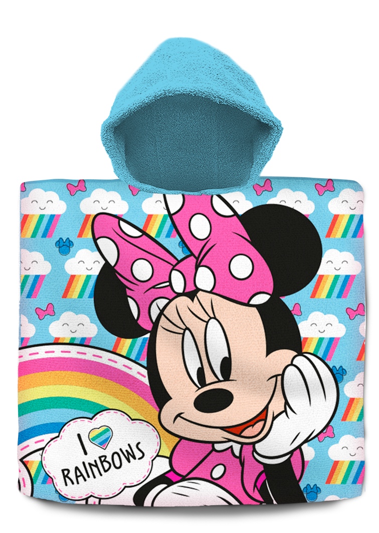 Poncho kąpielowe z motywem Myszki Minnie zawsze potrzebne w domu , na basenie czy na plaży. Miękkie i przyjemne w dotyku .• Ponczo kąpielowe z kapturem dla dziecka• Wymiary: 120x60 cm• Materiał: 100% bawełna• Gramatura: 300 g/m2