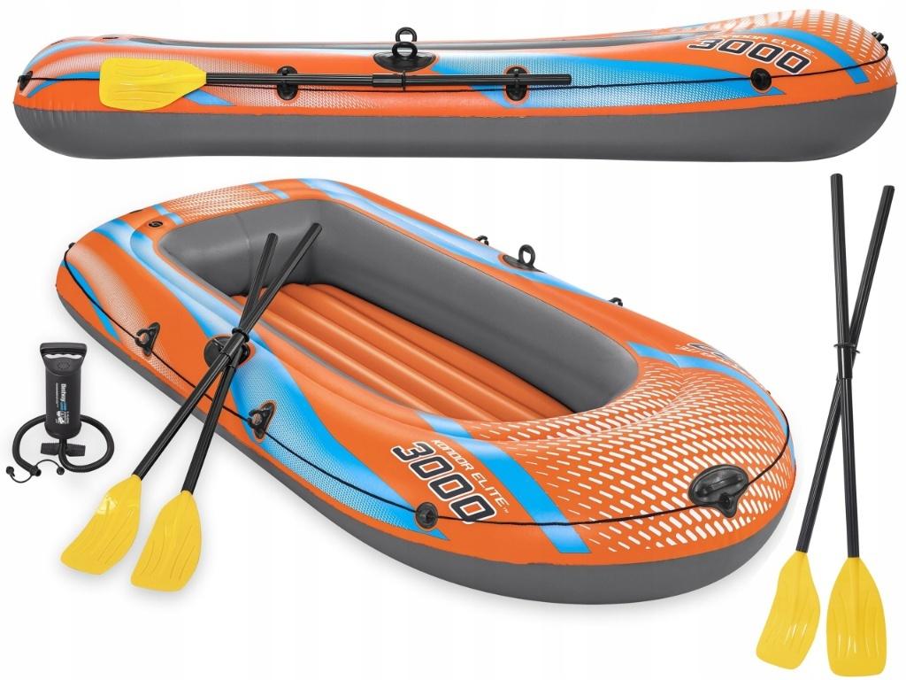 Dmuchany Ponton 3 Osobowy 246 x 122 cm Bestway 61145 Wyjazd nad wodę to idealna forma spędzania wolnego czasu. Aby urozmaicić sobie ten beztroski czas zaopatrz się w dodatkowe akcesoria basenowe. Ponton basenowy jest przeznaczony dla dwóch osób dorosłych oraz dziecka a maksymalna waga to 200 kg. Wykonany został z wytrzymałego winylu odpornego na uszkodzenia. Podłoga w pontonie jest nadmuchiwana, zwiększa to komfort siedzenia. Do zestawu dołączone została również para wioseł oraz pompka, dzięki czemu nie będziesz musiał poszukiwać żadnych dodatkowy akcesorii żeby wybrać się nad wodę. W skład zestawu wchodzi: - ponton - para wioseł - pompka ręczna 124 cm -łatka naprawcza Dane techniczne: - Wymiary 246 cm x 122 cm - przeznaczone dla 2 osób dorosłych i dziecka - uchwyt - nadmuchiwana podłoga - linki na całej długości do trzymania - Maksymalne obciążenie 200 kg Waga produktu: 8 kg Wymiary opakowania: 50 cm x 31 cm x 21 cm
