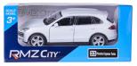 Samochód metalowy z plastikowymi elementami wykończenia wnętrza.