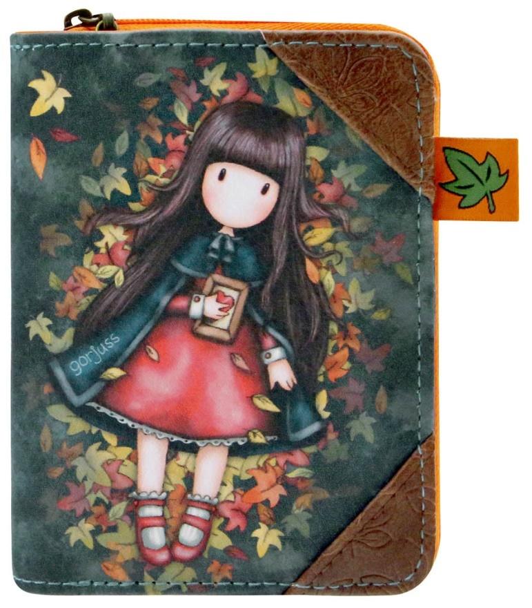 Portfel - Gorjuss - Autumn Leaves. Trzymaj pieniądze w tym pięknym portfelu. Ozdobiony wizerunkiem dziewczynki Gorjuss na tle rubinowych i kasztanowych jesiennych liści. W środku zasuwana kieszeń na drobne i wiele praktycznych przegródek. Portfel zamykany na zatrzaski. Czyścić wilgotną ściereczką. Elegancko wzmocnione narożniki.
