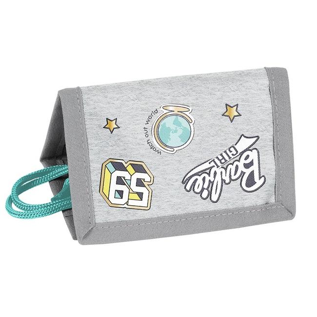 Portfel Barbie szary ze sznurkiem do zawieszania. Portfel ma jedną przegródkę na zamek na monety oraz jedną przeźroczystą kieszonkę na małe zdjęcie. Jedna kieszeń przez całą długość rozłożonego na płasko portfela mieści papierowe banknoty a dwie dodatkowe kieszonki mogą przydać się do przechowywania różnych informacji. Waga: 20 g Rozmiar: 26x12 (12x8,5)