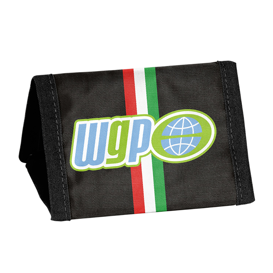 Portfel ze sznurkiem do zawieszania. Jedna przegródka na zamek na monety, jedna przeźroczysta kieszonka np. na zdjęcie, dwie dodatkowe kieszonki, jedna kieszeń przez całą długość rozłożonego na płasko portfela.