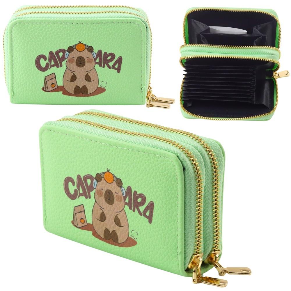 ZIELONY PORTFEL KAPIBARA DWUKOMOROWY NA KARTY I GOTÓWKĘ