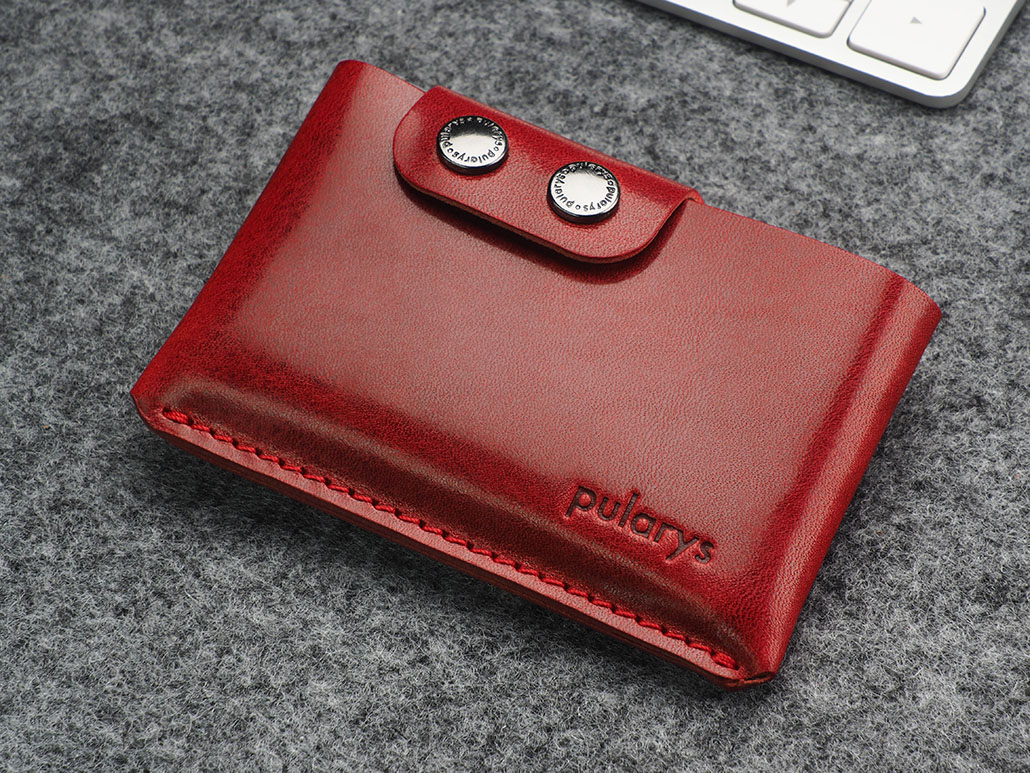 Wykonany z roślinnie garbowanej skory Nomad w kolorze czerwonym.
