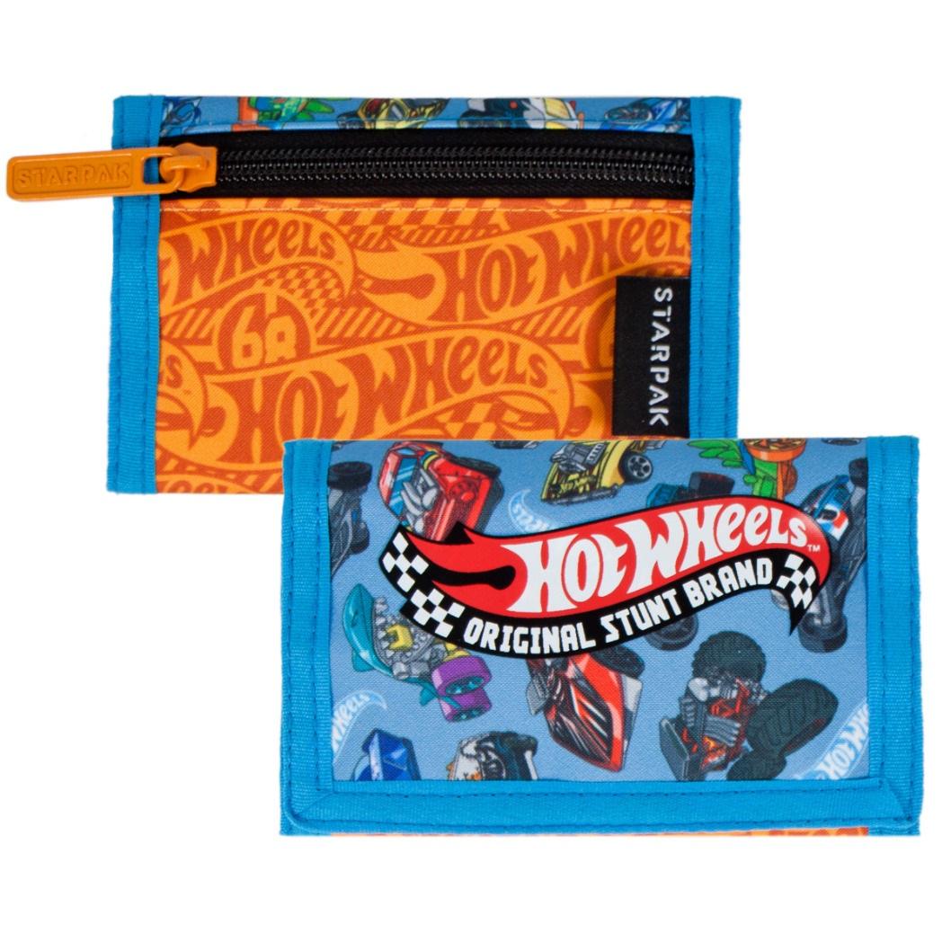 Portfel z kolekcji Starpak z licencją Hot Wheels. Zapinany na rzep, dzięki czemu pieniądze Twojego dziecka będą bezpieczne, nawet w dalekiej podróży. W środku znajduje się kieszonka na bilon oraz przegródki na karty płatnicze. Zapoznaj się również z innymi produktami Starpak z serii Hot Wheels! Portfel jest produktem tekstylnym. Pakowany w folię z zawieszką. Przeznaczony dla dzieci w wieku: 3+. Wymiary produktu(wys.x szer. x gł.) [cm]: 13x9x2.