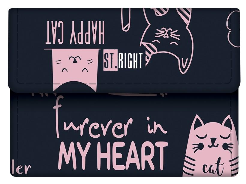Wyjątkowy portfel w różowe kotki na ciemnym tle, Wnętrze perfekcyjnie współgra z motywem przewodnim. Zamykany jest na solidny rzep. Posiada pojemną komorę na banknoty, która pomieści każdą gotówkę. Kieszonka na monety zamykana jest na wygodny zatrzask. Portfel ponadto posiada cztery przegródki na karty, dokumenty czy wizytówki. Wszystko wykonane z wysokiej jakości materiału ze znakomitym wykończeniem. Portfel idealnie współgra z innymi produktami z tej serii.