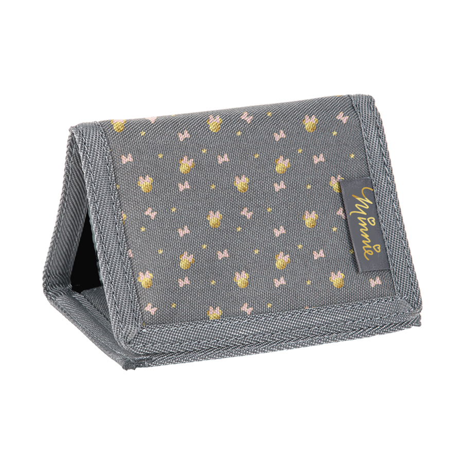 Praktyczny portfel młodzieżowy Minnie Gold. Portfel zamykany na rzep, ma jedną zamykaną na zamek przegródkę na monety, przegrodę na banknoty oraz liczne przegrody na dokumenty. Kompaktowe rozmiary portfela pozwalają bez trudu umieścić go w szkolnym plecaku.