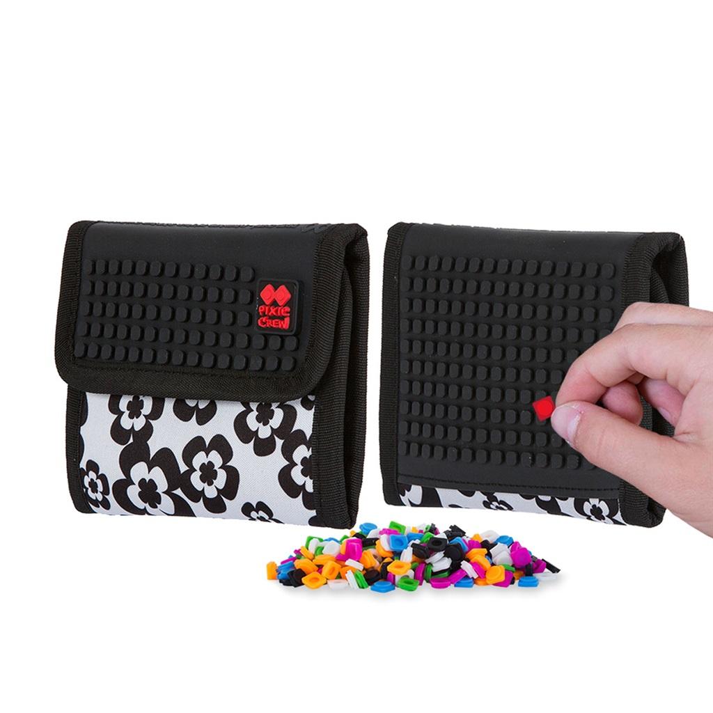 Stylowy neoprenowy portfel z unikalnym silikonowym panelem kreatywnym PIXIE CREW TM w kolorze czarnym z białymi kwiatami, na którym możemy skomponować własny obraz! Portfel jest sprzedawany z dodatkowym darmowym zestawem około 100 pikseli. Czarny silikonowy panel z przodu (11 cm x 8 cm) posiada 150 punktów plus panel z tyłu (11 cm x 4 cm) na 66 punktów, na nieskończoną ilość motywów na każdy dzień dzięki PIXIES (piksele), które możesz zdjąć w dowolnym momencie oraz wymienić na inny. Tylko wyobraźnia wyznacza tu granice.