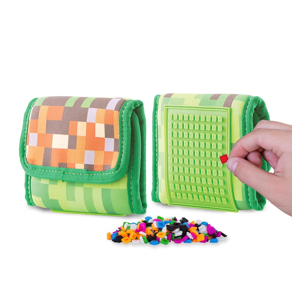 Praktyczny portfel wykonany z wytrzymałego neoprenu z silikonowym panelem z motywami z naszego bestsellera, zielono-brązowych kostek, przywodzących na myśl słynną na całym świecie grę komputerową, na którym może skomponować własny obraz! Zielony silikonowy panel w kształcie kwadratu posiada 97 punktów na nieskończoną ilość motywów na każdy dzień dzięki PIXIES (piksele), które możesz zdjąć w dowolnym momencie oraz wymienić na inny. Tylko wyobraźnia wyznacza tu granice. Portfel jest sprzedawany z dodatkowym darmowym zestawem około 69 kolorowych pikseli.