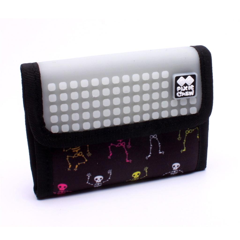Portfel na Rzep, PIXIE CREW, Szkielety, Panel, Świecący w Ciemności Stylowy portfel neoprenowy w kolorze czarnym w zabawne szkielety, z unikalnym silikonowym panelem kreatywnym