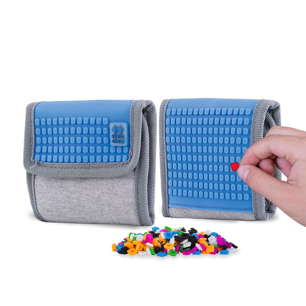 Stylowy filcowy portfel z unikalnym silikonowym panelem kreatywnym PIXIE CREW TM w kolorze szarym, na którym możemy skomponować własny obraz! Niebieski silikonowy panel z przodu (11 cm x 8 cm) posiada 150 punktów plus panel z tyłu (11 cm x 4 cm) na 66 punktów, na nieskończoną ilość motywów na każdy dzień dzięki PIXIES (piksele), które możesz zdjąć w dowolnym momencie oraz wymienić na inny. Tylko wyobraźnia wyznacza tu granice. Portfel jest sprzedawany z dodatkowym darmowym zestawem około 100 kolorowych pikseli.