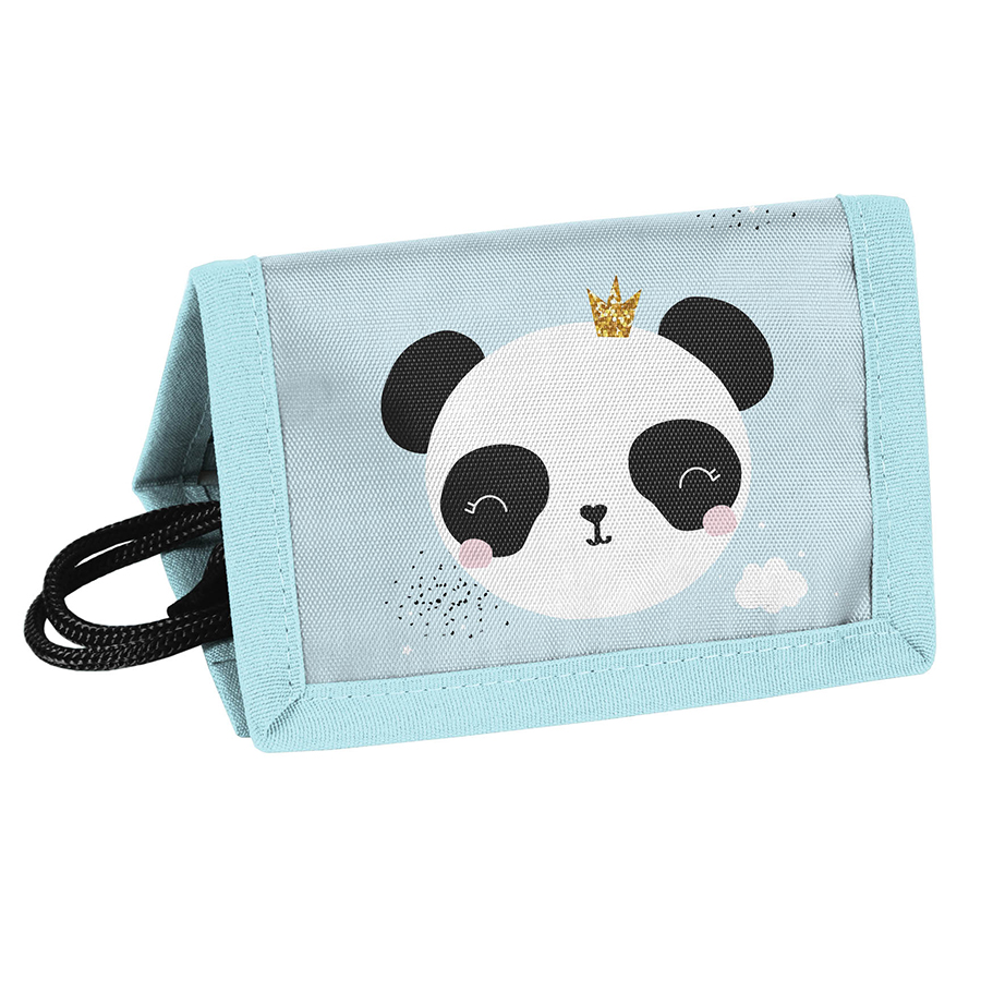 Portfel Panda ze sznurkiem. Portfel posiada wiele funkcjonalnych przegród zapewniających dobrą organzację.Wewnątrz kieszonka na zamek na monety oraz przeźroczysta kieszonka na małe zdjęcie. Obszerna kieszeń przez całą długość rozłożonego na płasko portfela mieści papierowe banknoty, a dwie dodatkowe przegrody mogą przydać się do przechowywania różnych informacji. Model wyposażony został w sznureczek umożliwiający zawieszenie lub przymocowanie produktu.