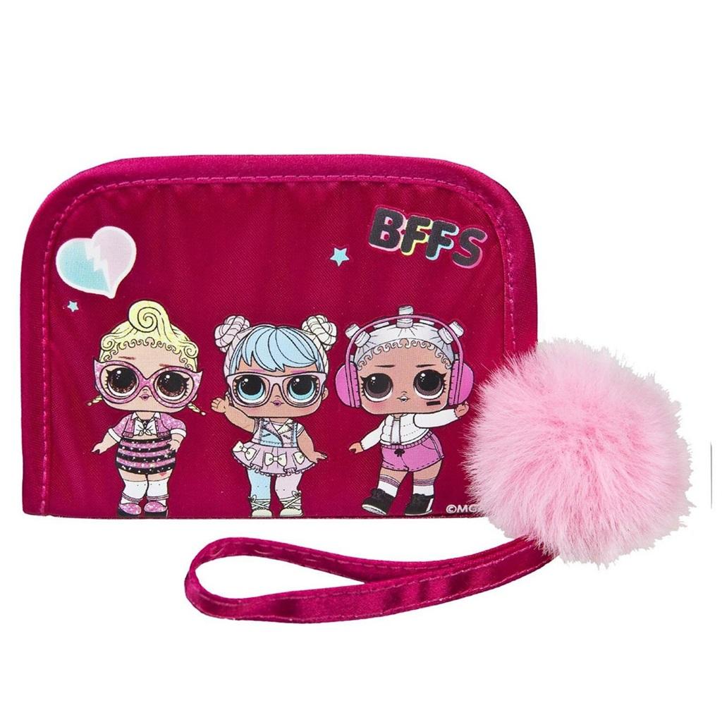 Portfel, Portmonetka, LOL Surprise Niewielki portfel, portmonetka zamykany na suwak. Posiada 2 pojemne kieszenie na monety i na banknoty oraz boczną przegródkę na karty. Inspiracją jest tu największy zabawkowy hit ostatnich lat, LOL Surprise. Dzięki uroczym bohaterom szkoła może być fajna. Nieważne czy jesteś pierwszoklasistą czy piątoklasistą - potrzebujesz przyborów do szkolnej przygody. Niewielki portfel, portmonetka zamykany na suwak. Wewnątrz 2 kieszonki na monety i banknoty. Dodatkowa boczna przegródka na karty. Zewnątrz zdobiony uroczą grafiką laleczek LOL. Wzbogacony zawieszką, różowym pomponem. Wykonany solidnie z odpornej na zabrudzenia tkaniny. Wymiary: 10 cm x 13,5 cm x 2 cm. Kategoria wiekowa: 3+.