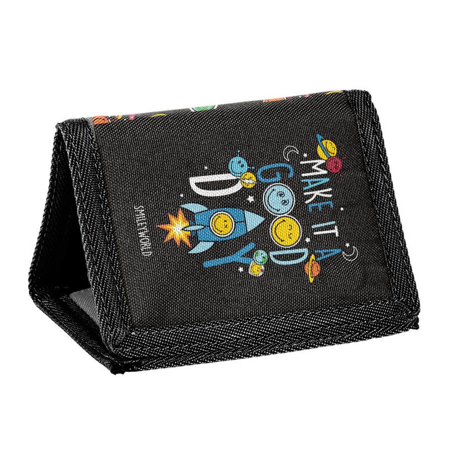 Portfel zamykany na rzep, posiada przegrodę na banknoty i zapinaną kieszonkę na monety oraz liczne przegrody na dokumenty.