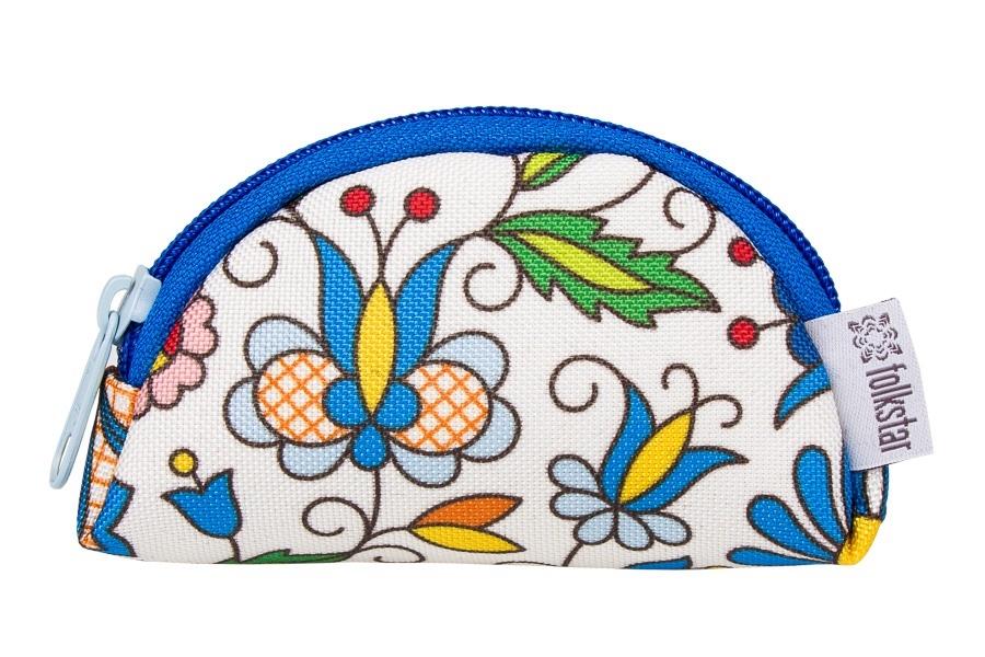 Kosmetyczka z motywem kaszubskiego haftu: projekt inspirowany tradycyjnymi wzorami ludowymi z haftów kaszubskich,motywem przewodnim wśród kaszubskich wzorów kwiatowych są: goździki, bratki, koniczynki, chabry, niezapominajki, dzwonki, lilie i róże,zapinany na zamek błyskawiczny,