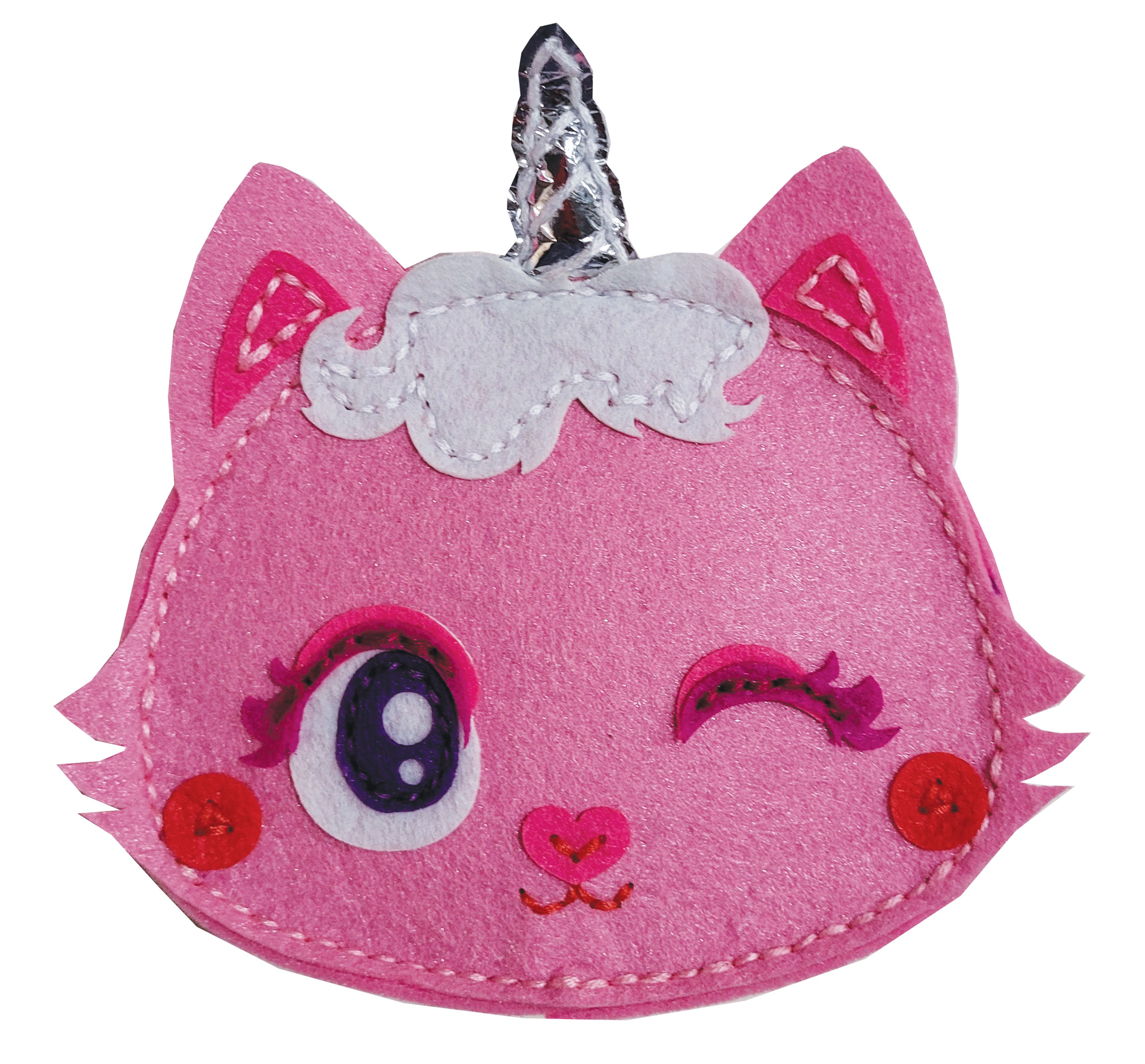 W skład zestawu wchodzą: filcowe elementy gotowe do zszycia, elementy ozdobne, plastykowa igła, bawełniane nici oraz instrukcja.