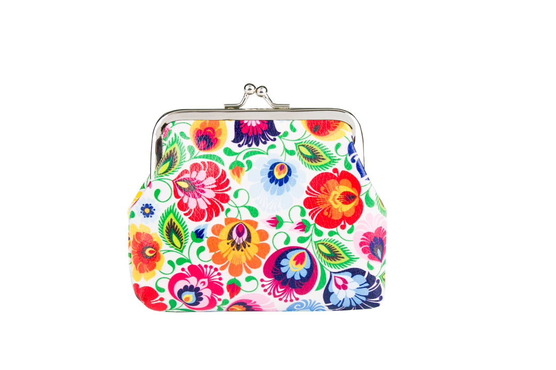 Duża łowicka portmonetka zamykana na zatrzask - biała: