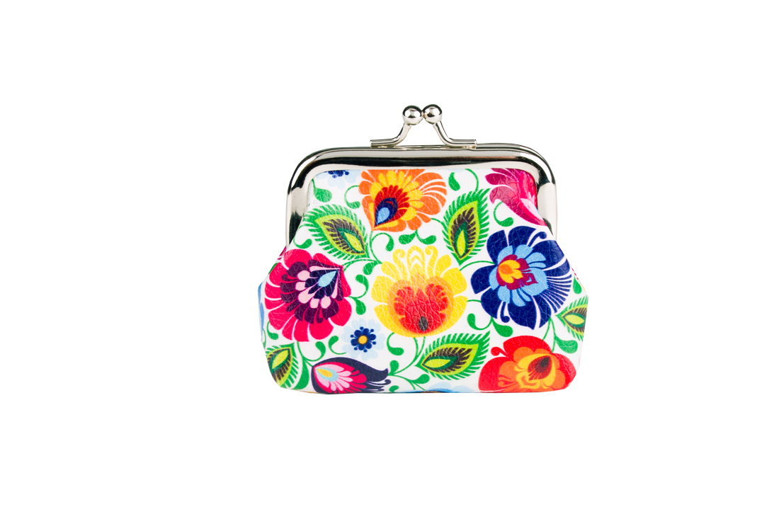 Mała łowicka portmonetka zamykana na zatrzask - biała:
