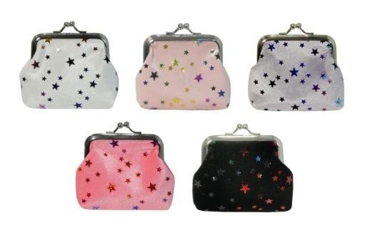 Urocza welurowa portmonetka w gwiazdeczki. Pomoże dziewczynkom zgromadzić w jednym miejscu ich pierwsze oszczędności. Produkt występuje w kilku wersjach kolorystycznych, wybierany losowo. Cena dotyczy jednej sztuki. Produkt przeznaczony dla dzieci od 3 lat. Produkt zapakowany w kartonowa podstawkę z przezroczystym kloszem.