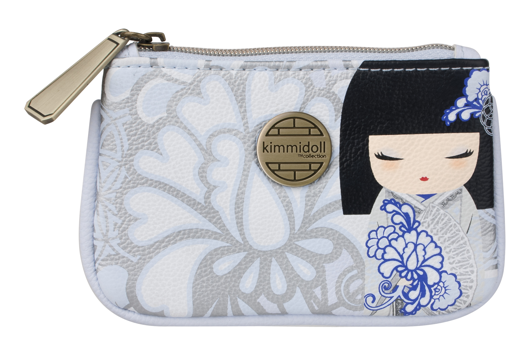 Portmonetka z kolekcji kimmidoll z wizerunkiem kokeshi Kyoka - szczęście.Materiał skóra ekologiczna, zapinana na zamek, z tyłu 2 przegrody na karty.Wymiary:120x80x10 mm.
