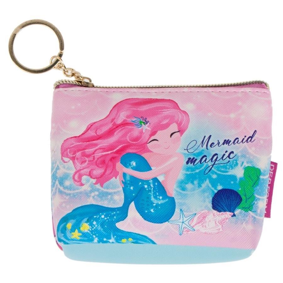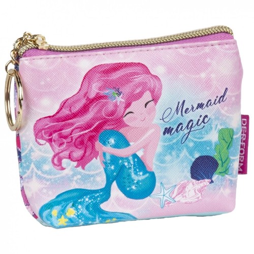 Portmonetka zamykana na zamek wykonana z mocnego tworzywa. Zamek zakończony jest zawieszką np. do kluczy. Wnętrze portmonetki wykończone jest podszewką.
