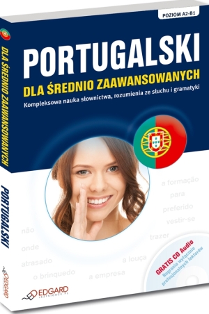 PORTUGALSKI dla średnio zaawansowanych to kurs, z którym:- aktywnie uczysz się języka,- poznajesz niezbędne słownictwo,- trenujesz znajomość gramatyki,- rozwiązujesz różnorodne ćwiczenia,- doskonalisz rozumienie ze słuchu,- uczysz się konstruować wypowiedzi pisemne.Kurs przeznaczony jest dla tych, którzy opanowali podstawy języka portugalskiego i chcą kontynuować naukę na poziomie średnio zaawansowanym (A2-B1). Książka (184 strony) opiera się na unikalnej metodzie zintegrowanej nauki. Dzięki niej szybko i skutecznie opanujesz wszystkie kompetencje językowe. Kurs pozwoli ci jednocześnie doskonalić praktyczną znajomość języka, poszerzać zasób słownictwa, rozwijać umiejętności rozumienia tekstów pisanych, rozumienia ze słuchu i samodzielnego komponowania wypowiedzi pisemnych. W 14 rozdziałach tematycznych znajdziesz: krótkie teksty, gramatykę w pigułce, dialogi sytuacyjne, porcję słówek, liczne ćwiczenia leksykalne igramatyczne, a także interesujące informacje o kulturze Portugalii. Dla ułatwienia nauki samoukom, na końcu każdego rozdziału umieszczono praktyczny słowniczek, a na końcu książki wykaz niezbędnych słów i wyrażeń. Dodatkowo dołączono do kursu CD Audio, która zawiera nagrania w wykonaniu profesjonalnych lektorów. Znajdują się na niej teksty otwierające każdy z rozdziałów oraz ciekawostki na temat Portugalii. Słuchanie nagrań ułatwia naukę współczesnego języka portugalskiego, wtym jego potocznej odmiany i płynne komunikowanie się.