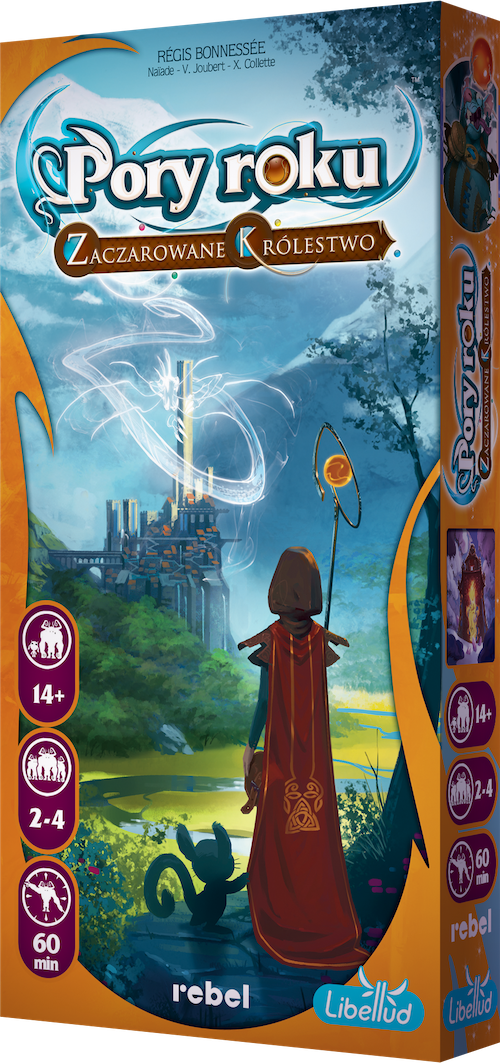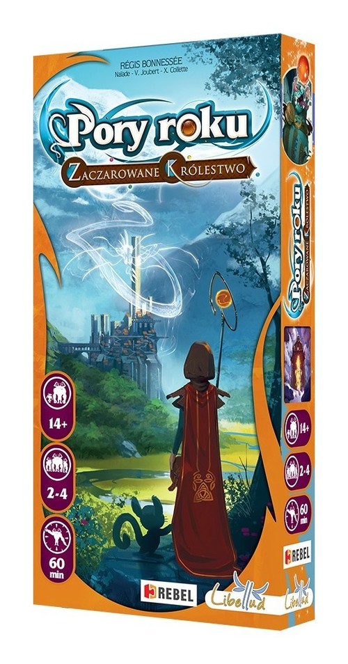 Pierwszy dodatek do Pór Roku Dodatek zawiera 40 nowych kart Mocy, które można łączyć ze 100 kartami z gry podstawowej. Unikalne 10 kart Czarów sprawi, że każda rozgrywka stanie się jeszcze bardziej odmienna od poprzedniej! 12 żetonów zdolności specjalnych wyróżni Twojego czarnoksiężnika spośród reszty. Przygotuj się na nowe wyzwania i czary! Uwaga: W tym dodatku dzięki uprzejmości wydawnictwa Libellud znajduje się 5 poprawionych kart z podstawowej wersji gry: Kociołek Żarłoka, Przeklęta Rozprawa z Arus, Potępiona Dusza Onysa, Bożyszcze Kompanów oraz Równowaga Isztar. Karty te zastępują ich oryginalne odpowiedniki. Pory Roku (Seasons) Uwaga! To nie jest samodzielna gra! Do rozgrywki wymagana jest podstawowa wersja gry: Pory Roku (Seasons). Zawartość pudełka: 40 kart Mocy 10 kart Czarów 12 żetonów zdolności specjalnych 16 żetonów energii 2 znaczniki Kruka 1 znacznik Pierwszego Gracza 7 znaczników „zmniejszonych zasobów” 2 dodatkowe pola zasobów „Zaczarowanego grymuaru” – rozszerzenia do plansz graczy Gra przeznaczona jest dla 2-4 osób w wieku powyżej 14 lat. Czas trwania gry - około 60 minut.