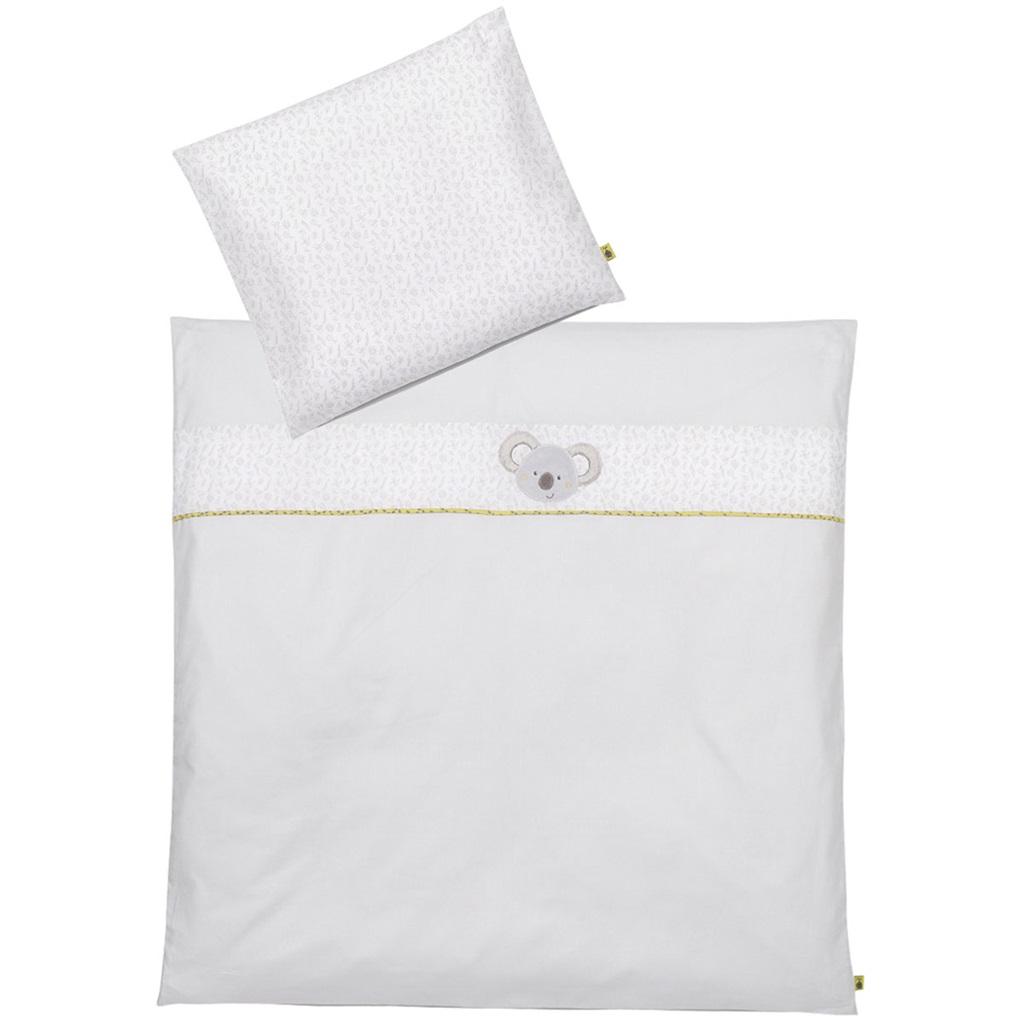 Pościel do łóżeczka, komplet, z kolekcji: Australia Magiczna pościel dla każdego maluszka. Wykonana z najwyższej jakości materiałów. 2 - częściowy komplet pościeli ozdobnej składający się: z powłoczki na poduszkę o delikatnym wzorze oraz powłoczki na kołderkę ozdobionej elegancką aplikacją przedstawiającą główkę misia Koali. Wyjątkowa miękkość i delikatność tkaniny sprzyja relaksowi i umila sen dziecku. Zapakowana w elegancki przeźroczysty pokrowiec z wygodnym uchwytem. Wraz z innymi produktami tej samej serii, np: maskotką z grzechotką, termoforem z pestek wiśni, ręcznikiem z kapturem lub otulaczem może stanowić doskonały prezent na chrzciny czy 1 urodziny. Materiał: 100% bawełna, nadruk - 65% poliester, 35% bawełna. Zaawansowana technologia użyta w produkcji tej tkaniny sprawia, że jest bardzo trwała i przewiewna. Gwarantowane bezpieczeństwo i jakość produktu, zachowanie odpowiednich atestów i certyfikatów. Pranie w temp. 60 C. Wymiary: poszewki na poduszkę - 35 cm x 40 cm., zasuwana na suwak. Wymiary: poszewki na kołderkę - 80 cm x 80 cm., zasuwana na suwak. Wymiary opakowania: 30 cm x 30 cm x 3 cm. Wszystkie artykuły niemieckiej marki FEHN są bezpieczne dla dzieci od 0 lat. Wykonane są z najlepszej jakości materiałów. Spełniają normy EN71, CE, badane w instytutach Stiftung Warentest lub kotest.