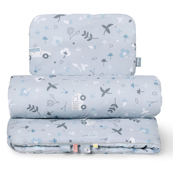 Dwustronny komplet pościeli z wypełnieniem wykonany z najwyższej jakości materiałów – niezwykle delikatnej bawełnianiej satyny oraz specjalnego antyalergicznego silikonowego wypełnienia. Zestaw składa się z lekkiej kołderki i płaskiej, bezpiecznej dla główki niemowlęcia poduszeczki. Stosowane przez nas wypełnienie jest sprężyste i oddychające, zapewnia właściwą temperaturę oraz komfort snu dziecka.