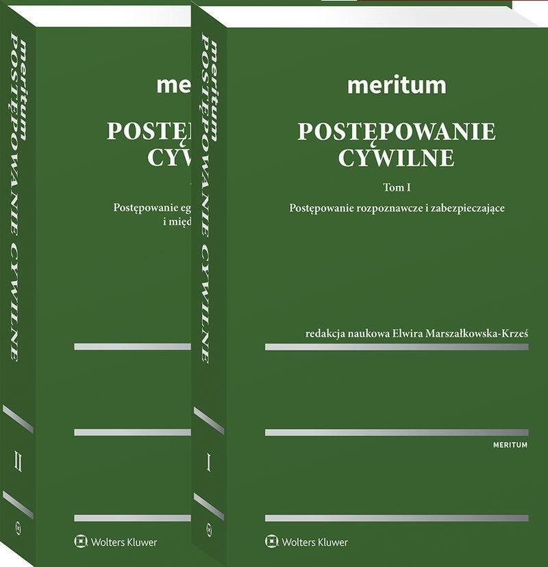 MERITUM Postępowanie cywilne to systemowe ujęcie dotyczące wszystkich rodzajów postępowania w sprawach cywilnych oraz w regulacjach międzynarodowych i unijnych tych spraw. Celem publikacji jest przystępne i przejrzyste przedstawienie przesłanek, przebiegu oraz zakończenia postępowania w omawianych sprawach wraz z zaprezentowaniem poglądów doktryny i orzecznictwa Sądu Najwyższego. Opracowanie ma – zgodnie z założeniami serii – charakter wybitnie praktyczny. Dlatego też istotne jest wskazanie na ważne elementy prezentowanych zagadnień, zmiany przepisów prawa, linii orzeczniczej, bądź interpretacji poszczególnych instytucji, a także odwoływanie się do użytecznych wzorów i rozwiązań, przy jednoczesnym powołaniu bogatej literatury i judykatury. Część pierwsza to wprowadzenie do podstawowych zasad i terminów, jak też przedstawienie instytucji prawa procesowego oraz jego wykładni. Część druga zawiera kompleksowe omówienie wszczęcia, przebiegu i zakończenia postępowania rozpoznawczego w zwykłym postępowaniu i w ramach postępowań odrębnych. Część trzecia stanowi przedstawienie wszystkich rodzajów postępowania nieprocesowego. Część czwarta zawiera szczegółowe omówienie przebiegu postępowania zabezpieczającego i skutków jego przeprowadzenia. W części piątej dokonano całościowej analizy postępowań wykonawczych tj. postępowania klauzulowego, postępowania o wyjawienie majątku, jak też postępowania egzekucyjnego (tj. części ogólnej i poszczególnych sposobów prowadzenia egzekucji). Część szósta w pogłębiony sposób zawiera omówienie zagadnień dotyczących postępowania cywilnego w regulacjach prawa europejskiego i międzynarodowego. W części siódmej przybliżono przepisy z zakresu mediacji i postępowania arbitrażowego. Autorami są specjaliści prawa i postępowania cywilnego, którzy w większości łączą pracę naukową z wykonywaniem zawodów prawniczych.