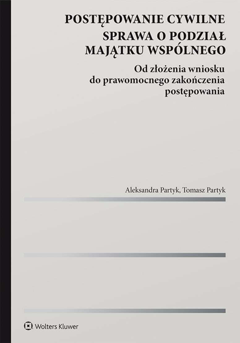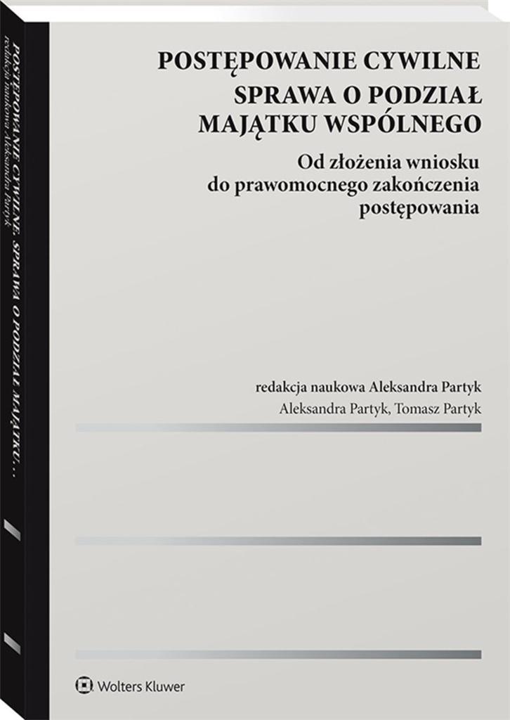 W opracowaniu przedstawiono przebieg postępowania cywilnego w sprawie o podział majątku wspólnego po ustaniu małżeńskiej wspólności majątkowej. Krok po kroku opisano czynności podejmowane w sprawie przez strony i sąd (przewodniczącego, asystenta sędziego, referendarza sądowego) w takim porządku, jak ma to miejsce w rzeczywistym postępowaniu sądowym - od sporządzenia wniosku do prawomocnego zakończenia sprawy. Autorzy posłużyli się metodą case study, tzn. zaprezentowali konkretne stany faktyczne.