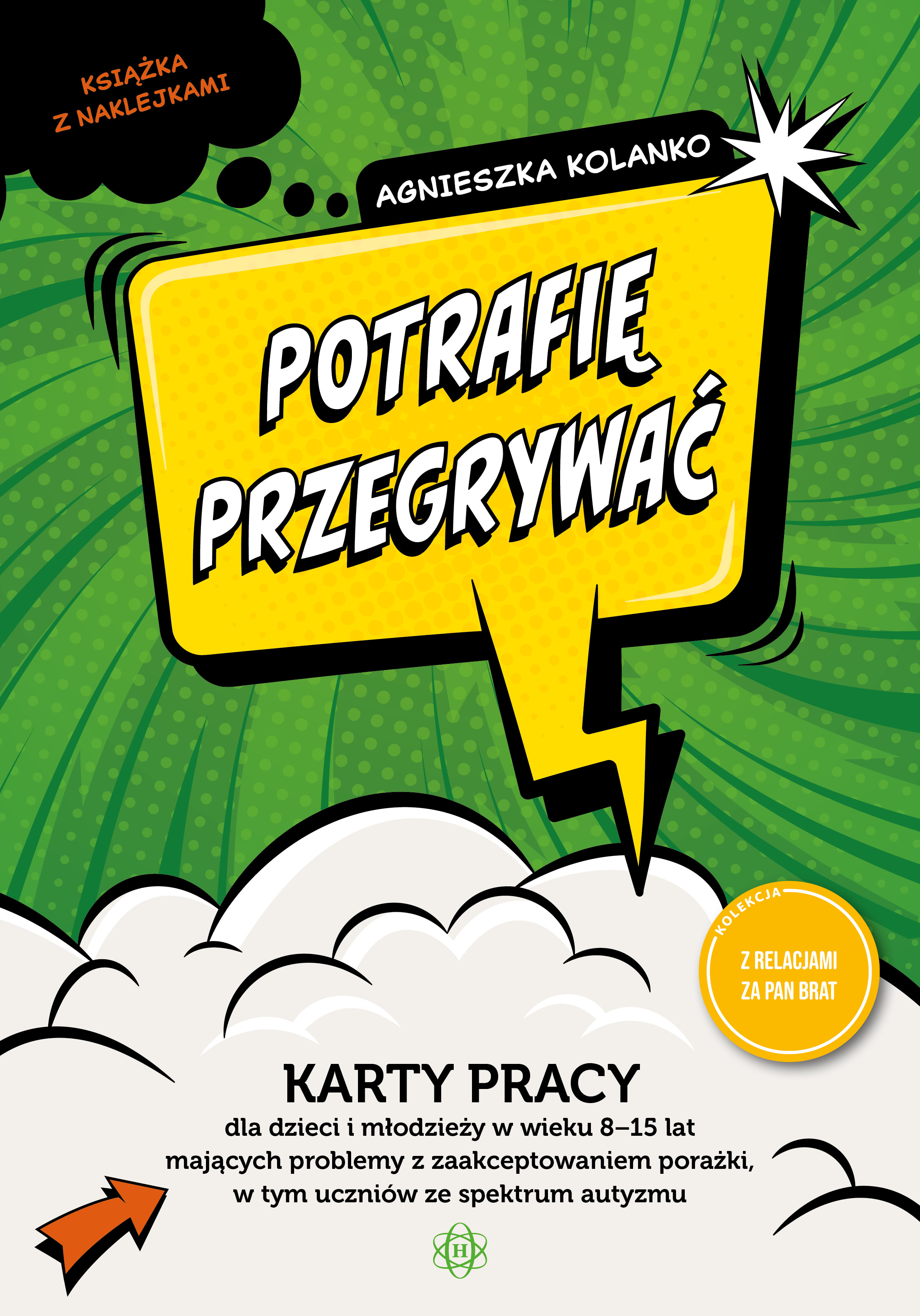 Karty pracy, przeznaczone dla uczniów w wieku 8–15 lat, przygotowują do zmierzenia się z trudnym doświadczeniem przegranej. Książka została opracowana z myślą o terapii dzieci i młodzieży ze spektrum autyzmu oraz wszystkich tych, którzy nie potrafią poradzić sobie z zaakceptowaniem porażki. Kolejne karty pracy poświęcone zostały takim zagadnieniom, jak: korzyści płynące z doświadczenia przegranej skutki pozytywnego i negatywnego myślenia analiza porażki sposoby radzenia sobie z niepowodzeniem kodeks fair play. Dodatkowo publikacja zawiera: zadanie „Twoja droga od porażki do sukcesu” – pomoc do wizualnego przedstawienia procesu radzenia sobie z niepowodzeniami ponad 500 naklejek do wypełnienia kart. Książka należy do kolekcji i pakietu Z RELACJAMI ZA PAN BRAT.