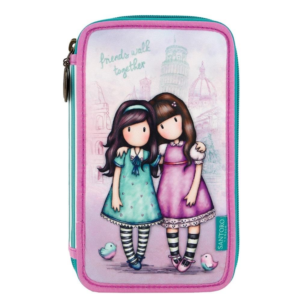 Gorjuss - Potrójny Piórnik z wyposażeniem - Friends Walk Together