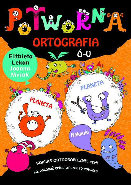 Seria komiksów podpowiadających, jak pokonać potwory ortograficzne. Przeczytaj krótkie teksty, podpisy pod ilustracjami, naklej odpowiednie nalepki i zostań pogromcą potworów. Ortografii nauczysz się, czy chcesz czy nie. Przed tobą wspaniała przygoda i mnóstwo wyzwań.
