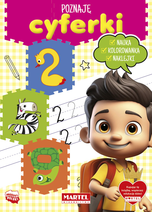 "Poznaję cyferki" to kolorowanka z naklejkami dla dzieci, które rozpoczynają swoją przygodę z rozpoznawaniem cyfr i prostymi zadaniami matematycznymi. Piękne rysunki to zachęta do nauki poprzez zabawę, a proste ćwiczenia pomogą nauczyć dodawać, odejmować i pozwolą rozwinąć manualne umiejętności. Do kolorowanki dołączono naklejki, które uatrakcyjnią wykonywanie zadań.