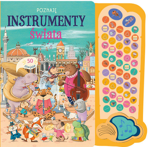 Książeczka sensoryczna – zawiera ELEMENTY DŹWIĘKOWE. Wspiera wszechstronny rozwój dziecka – pobudza ZMYSŁY WZROKU, DOTYKU I SŁUCHU. Prezentuje aż 50 DŹWIĘKÓW wydawanych przez instrumenty. Książka zabiera małych czytelników w niezapomnianą PODRÓŻ DO ŚWIATA INSTRUMENTÓW. Dzieci znajdą w niej niesamowite instrumenty, które można spotkać w teatrze, wesołym miasteczku, parku, mieście czy na łodzi. Wyróżnikiem publikacji jest aż 50 różnorodnych DŹWIĘKÓW wydawanych przez instrumenty. Dzięki niej maluch dowie się, jakie dźwięki wydają marakasy, gitara elektryczna, bęben basowy, akordeon, tamburyn czy ksylofon. Sympatyczne ILUSTRACJE zachęcają do lektury. Książka • działa na RÓŻNE ZMYSŁY: WZROK, DOTYK, SŁUCH • zapoznaje z dźwiękami najróżniejszych INSTRUMENTÓW • rozwija WYOBRAŹNIĘ • wzbogaca SŁOWNICTWO