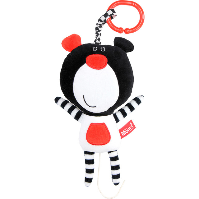 Dzięki obręczy przypniesz go bez problemu do wózka. Zestawienie mocno kontrastujących ze sobą kolorów nie tylko skupia wzrok dziecka, ale także stymuluje jego rozwój w pierwszych miesiącach życia. Interakcje dziecka z zabawką wspiera delikatna tradycyjna pozytywka pociągana.