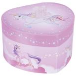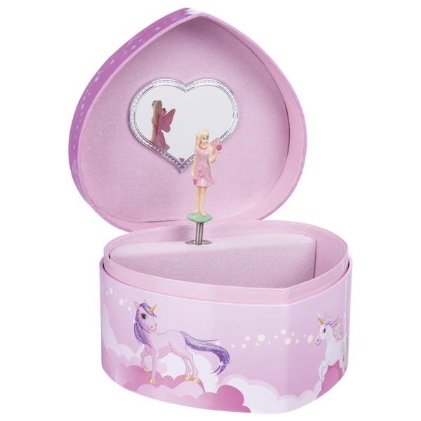 Gdzie lepiej przechowywać biżuterię dziecięcą niż w tym pudełku na biżuterię z jednorożcem i pozytywką? Jednorożec może i jest bajkowym zwierzęciem - ale w tym projekcie pudełka na biżuterię ożywa w fantastyczny sposób przy melodii "Dla Elizy" Beethovena. Wróżka tańczy z gracją przed lustrem w kształcie serca. Mechanizm pozytywki pozwala przeżyć wiele pięknych chwil. Otwierana szkatułka na skarby przyda się każden młodej damie. Można tam trzymać spinki, gumki do włosów, wstążki, a może też kolczyki albo pierścionki? Wiek: ND, Wymiary: 14.5 x 13.5 x 8.6 cm, Waga (kg): 0,3, Kod kreskowy produktu: 4013594155618